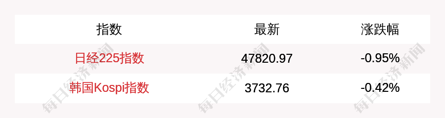 每經(jīng)AI快訊:北京時(shí)間10月17日08:00,日經(jīng)225指數(shù)開盤下跌456.77點(diǎn),跌幅為0.95%,報(bào)47820.97點(diǎn);韓國(guó)KOSPI指數(shù)開盤下跌15.61點(diǎn),跌幅為0.42%,報(bào)3732.76點(diǎn)。