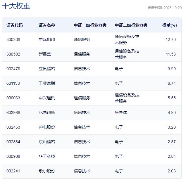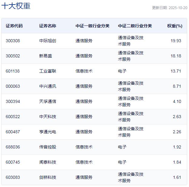 中證全指通信設(shè)備指數(shù)主要權(quán)重股