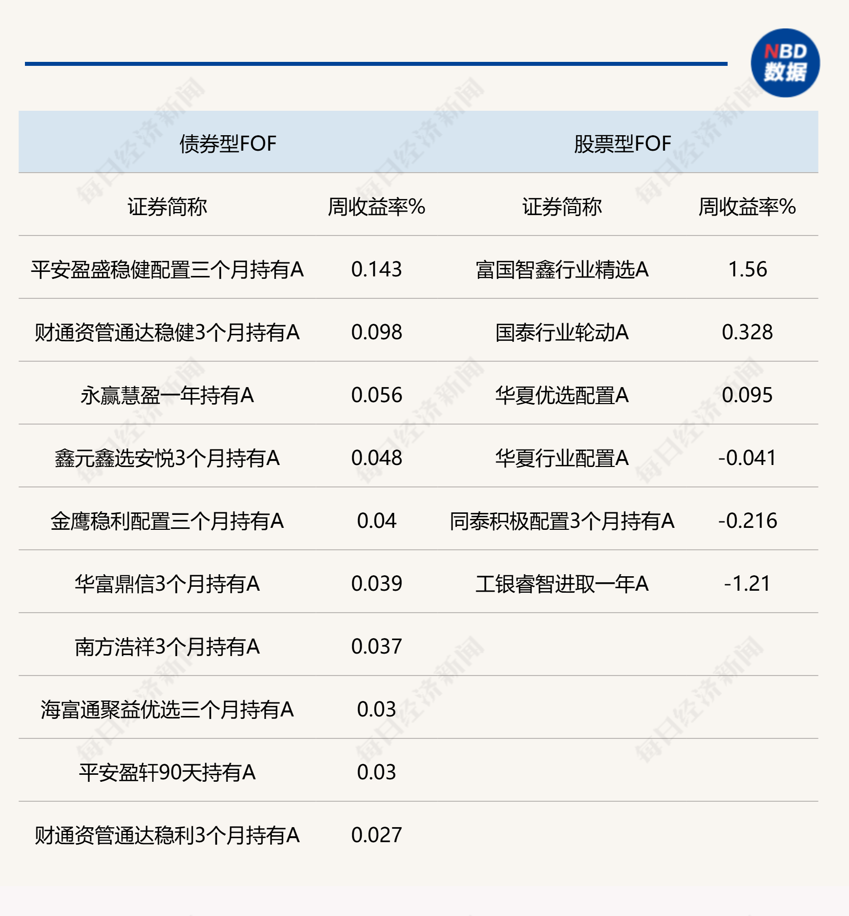 說明:上周各類公募FOF頭部業(yè)績產(chǎn)品統(tǒng)計 來源:Wind