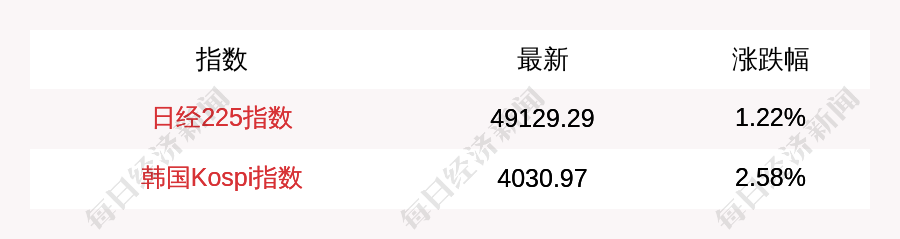 每經AI快訊:北京時間11月20日08:00,日經225指數開盤上漲591.59點,漲幅為1.22%,報49129.29點;韓國KOSPI指數開盤上漲101.46點,漲幅為2.58%,報4030.97點。
