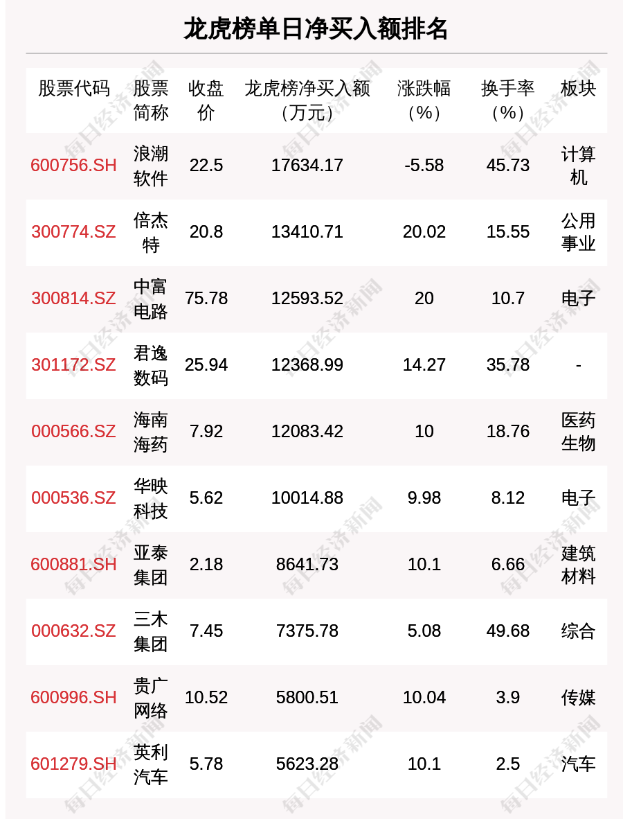 每經(jīng)AI快訊,11月20日,共有43只個股上榜龍虎榜,浪潮軟件龍虎榜單日凈買入額最多,達1.76億元。