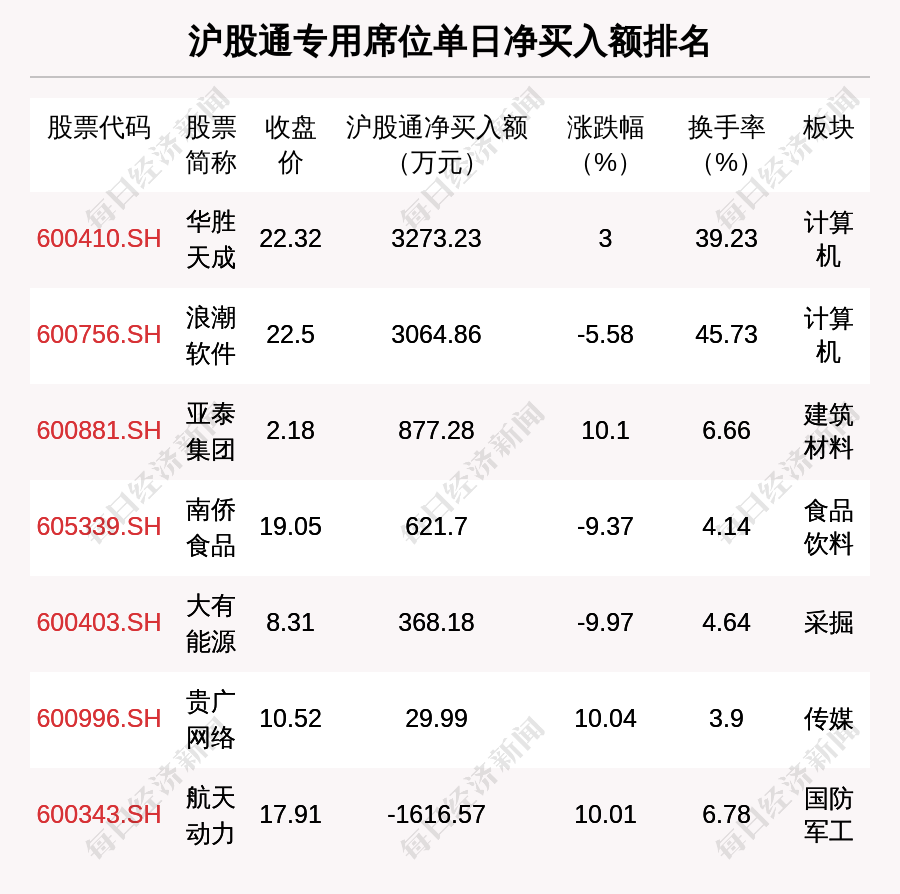 在龍虎榜中,涉及滬股通專用席位的個股有7只,華勝天成的滬股通專用席位凈買入額最大,凈買入3273.23萬元。