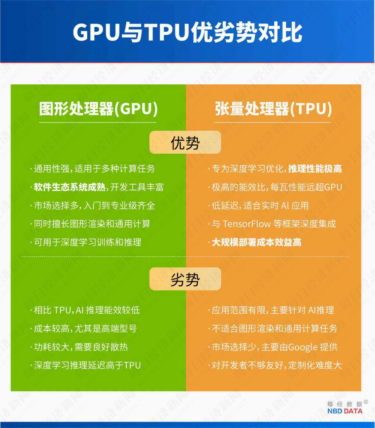 2025年11月,谷歌市值漲約5300億美元,英偉達(dá)跌去6200億美元。這一增一減背后,是Meta或“倒戈”采購(gòu)谷歌TPU芯片,沖擊英偉大GPU的主導(dǎo)地位。TPU與GPU技術(shù)路線不同,引發(fā)華爾街對(duì)英偉達(dá)地位的爭(zhēng)論,“共贏派”認(rèn)為市場(chǎng)足夠大,“威脅派”則擔(dān)憂谷歌生態(tài)威脅。