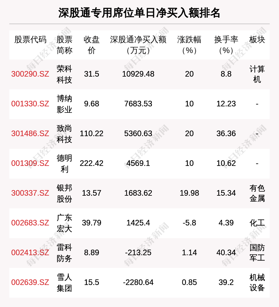 在龍虎榜中,涉及深股通專用席位的個股有8只,榮科科技的深股通專用席位凈買入額最大,凈買入1.09億元。