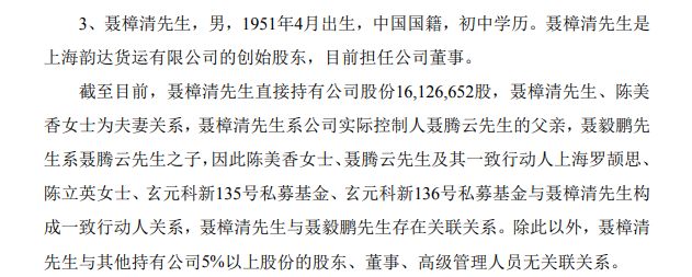 韻達(dá)股份表示,截至目前,聶毅鵬未持有公司股票。聶毅鵬與聶騰云、陳立英及其一致行動(dòng)人上海羅頡思、聶樟清、陳美香、玄元科新135號(hào)私募基金、玄元科新136號(hào)私募基金存在關(guān)聯(lián)關(guān)系。