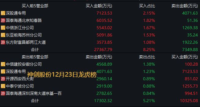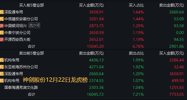 在本周的交易中,開源證券西安西大街操作的個股,都是流動性強的當(dāng)前熱門股,比如12月22日買入神劍股份2652萬元,12月23日反手就賣出2960萬元。從股價表現(xiàn)來看,神劍股份12月22日漲停,12月23日漲停,甚至之后的12月24日-26日股價都連續(xù)漲停。開源證券西安西大街錯失了后面連續(xù)3個漲停板。