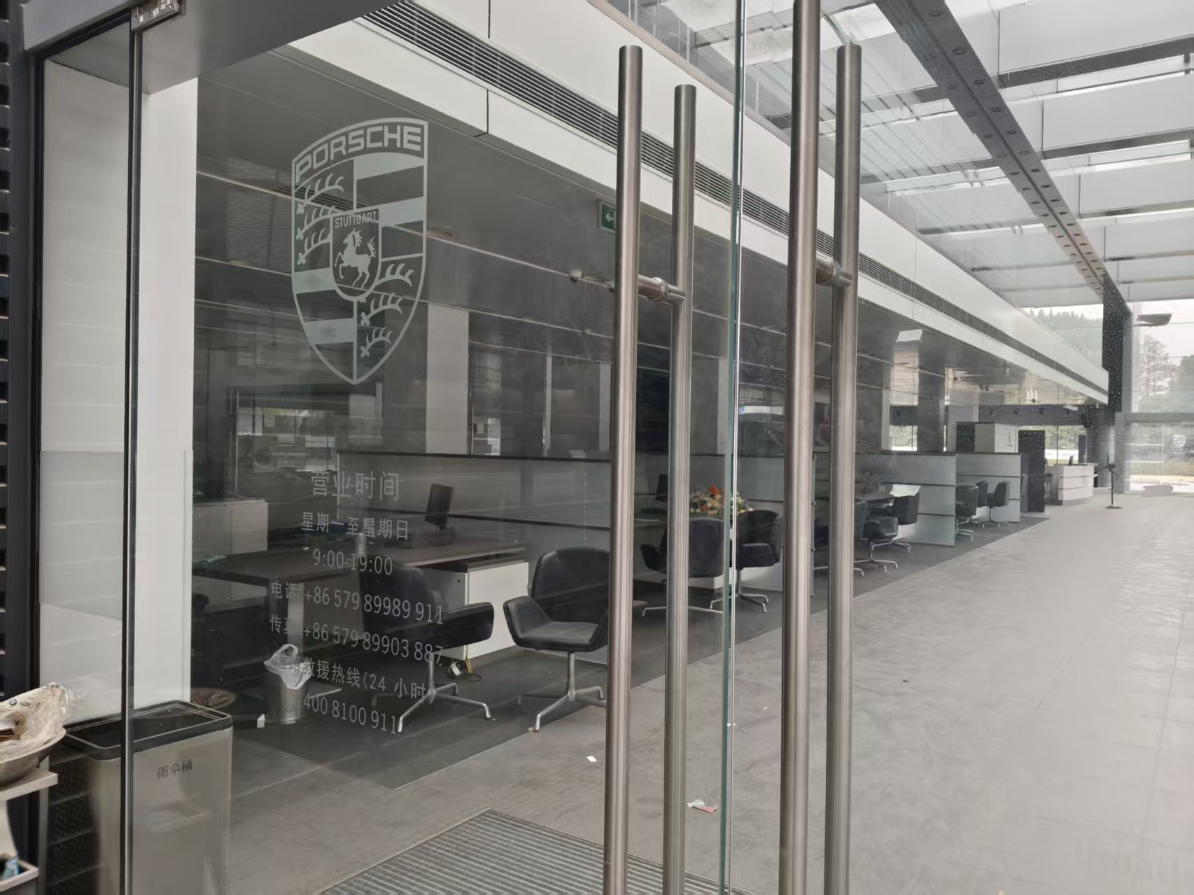現(xiàn)場豎立的標牌明確顯示,此處曾是義烏保時捷中心,作為寶利德旗下高端汽車銷售終端,建筑內(nèi)外至今仍留存著大量保時捷品牌標識,依稀能看出其昔日作為豪車4S店的規(guī)模與定位。