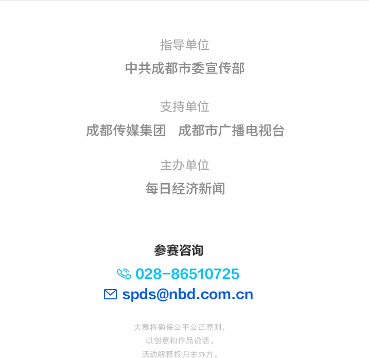 3.參賽咨詢:王女士 (028)86660288(工作日9:30-18:00) spds@nbd.com.cn